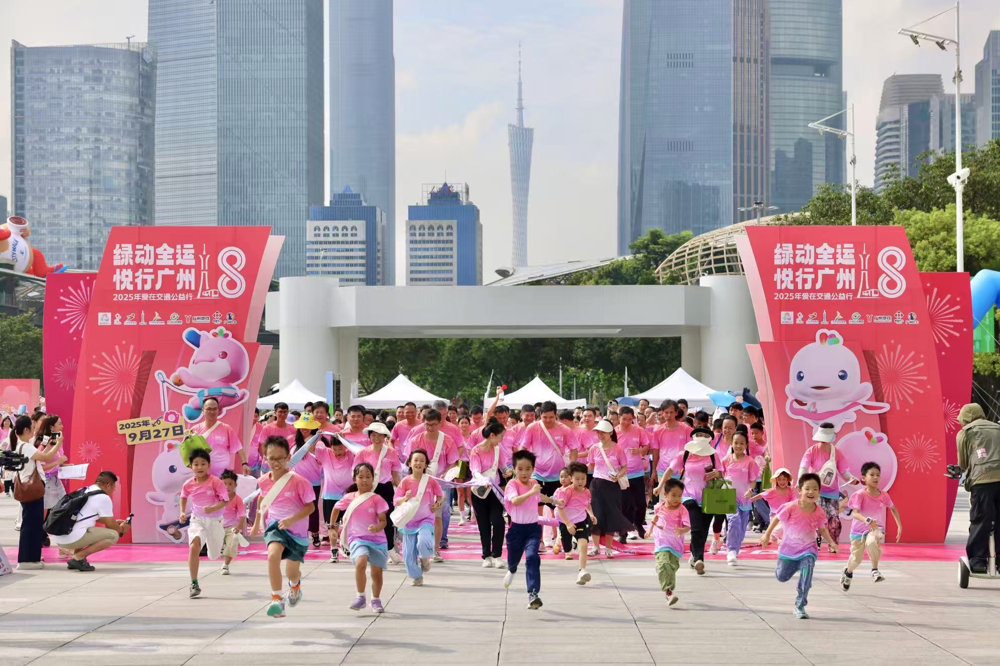 9月27日,广州天河体育中心广场上,广州2025年“爱在交通公益行”活动启动仪式暨低碳全运嘉年华正在举行。自2018年发起以来,广州“爱在交通公益行”活动已成功举办八届。